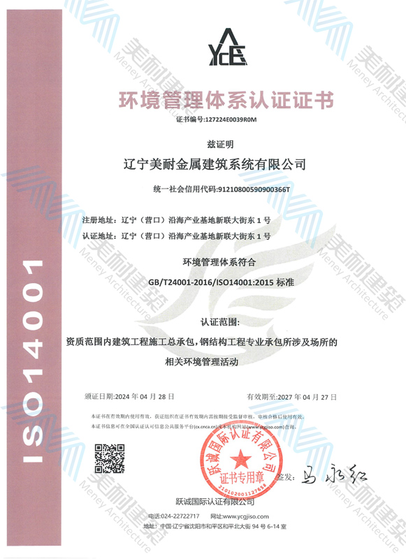 遼寧美耐金屬建筑系統(tǒng)有限公司位于遼寧(營(yíng)口)沿海產(chǎn)業(yè)基地,專注于預(yù)制金屬建筑系統(tǒng)領(lǐng)域,是一家集工業(yè)建筑設(shè)計(jì)、制作、施工及相關(guān)的技術(shù)咨詢與服務(wù)為一體的綜合性服務(wù)企業(yè)。作為國(guó)家鋼結(jié)構(gòu)協(xié)會(huì)會(huì)員、中國(guó)建筑金屬結(jié)構(gòu)協(xié)會(huì)會(huì)員單位與國(guó)家高新技術(shù)企業(yè),美耐建筑集建筑工程施工總承包、鋼結(jié)構(gòu)工程專業(yè)承包等多種資質(zhì)于一身,并擁有22項(xiàng)鋼結(jié)構(gòu)建筑領(lǐng)域?qū)@?項(xiàng)軟件著作權(quán)。